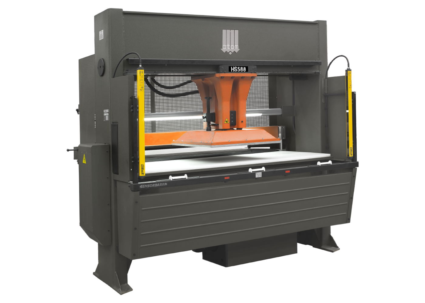 ATOM traveling head die cutting presses offer a wide & easily accessible working area suitable for cutting a wide variety of synthetic materials in either roll or sheet form.