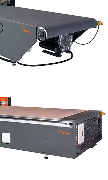 Powerful partitioned and adjustable vacuum system. Best material fixing during cutting with highest energy saving.