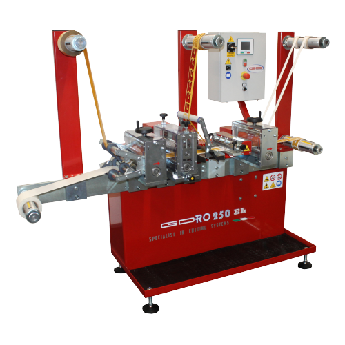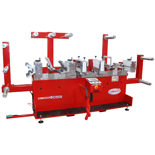 The Guidolin Girotto rotary die cutting machine, model RO EL, is the ideal Entry Level rotary cutting press for converters of neutral and printed labels, laminated foams and textiles, adhesives & double sided adhesive materials. This compact die cutting & converting machine is available in three working widths; 175mm, 250mm and 350mm, and is capable of running at speeds from 0-60 meters per minute. The new EL version employs the same features as the traditional RO series rotary die cutting systems; rigid electro-welded steel frame, modular stations, numerous options and computer controlled system making it extremely versatile, fast & easy to use, assuring rapid changeover which in-turn decreases down time and production costs.