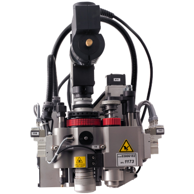 The 5-tool cutting head increases the overall versatility of the ATOM Flashcut and is one of the key factor of its success - the ability to total cut, score cut (partial depth cut) & kiss cut with one module, two auxiliary stations that can be equipped with rotating punches for precise small diameter holes, a creaser wheel or kiss cutting knife, a 4th station that includes a marking pen to apply part #’s and trademarks and a 5th non-rotating punch station that is used on light-weight materials. With this versatile head, the Flashcut now becomes a multi-functional production system for a variety of market sectors.
