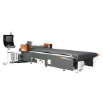 The continuous cutting operation performed by the conveyor-bed offers maximum production and throughput of cut parts. The material is fed onto the bed of the machine from the material handling device (material can be in roll or sheet form) into the “cutting zone”. Once the components are cut, the conveyor bed feeds the parts to a “take-off table” located at the front of the machine. The operator can strip the cut parts while the machine automatically reloads the material and the cutting process continues. Robustness of structure, reliability, performance and precision are the main features of the B line allowing the system to operate 3 shifts per day cutting the most difficult materials.