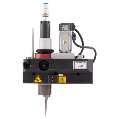 The single tool head is a universal module, designed to accept the full range of 40mm tools including pneumatic & electric oscillation, free or driven rotary cutting, kiss cutting, milling-routing, creasing & 45° angle cutting. The versatility of this module makes the cutting system configuration for specific cutting needs very simple & cost-effective. A spanner lock allows for rapid tool changes & the module can work in both pressure & position mode.