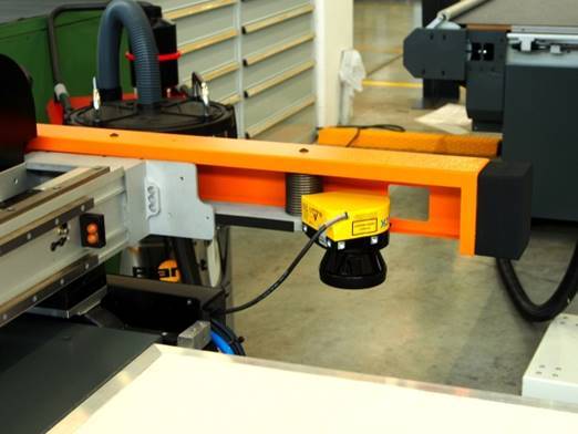The new safety device, standard on all TWINS EMH series, is designed with two laser scanning units positioned at both ends of the moveable gantry. The laser ray covers the area around the cutting head and the dimensions of these areas of intervention can be defined accordingly.