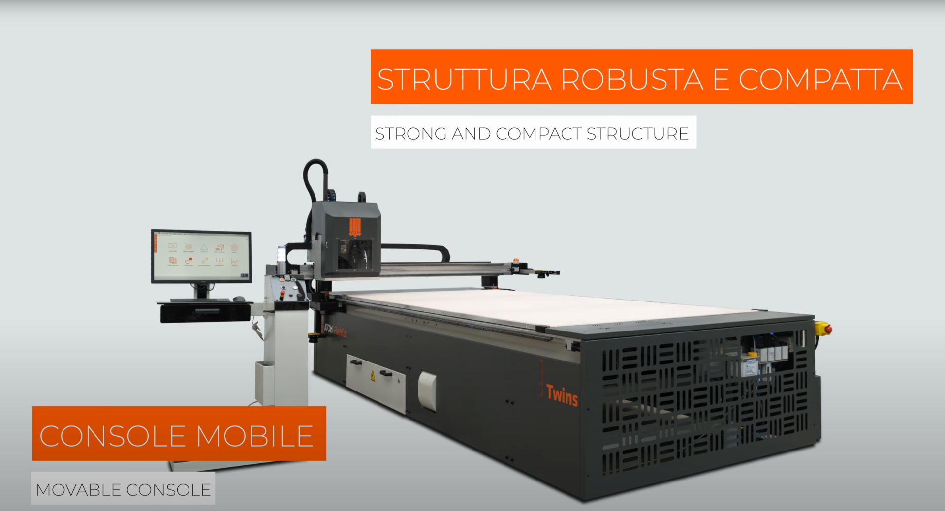 On the conveyorised models, the material feeding is carried out by the combined action of the belt and a pincer mounted on the gantry.