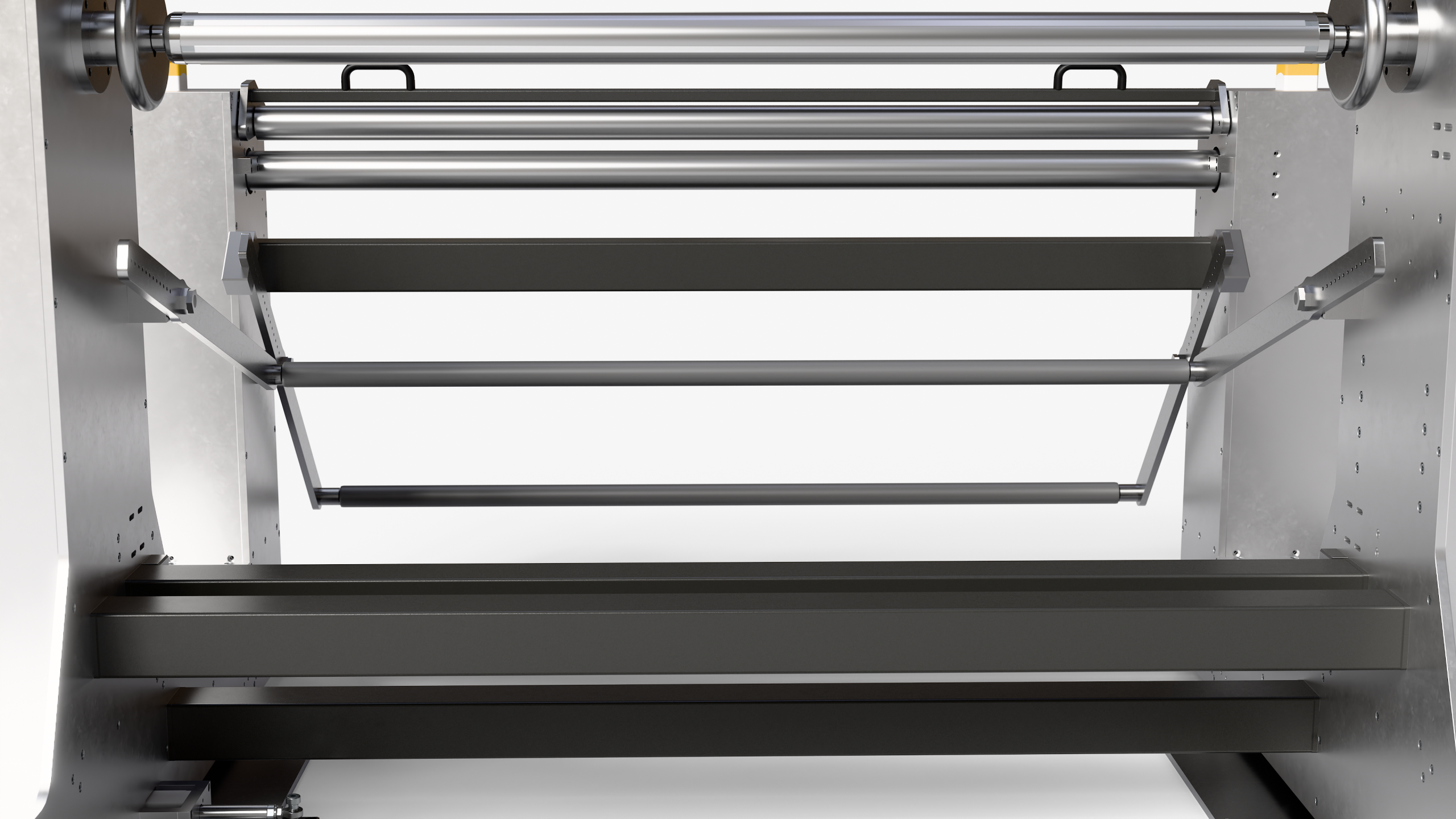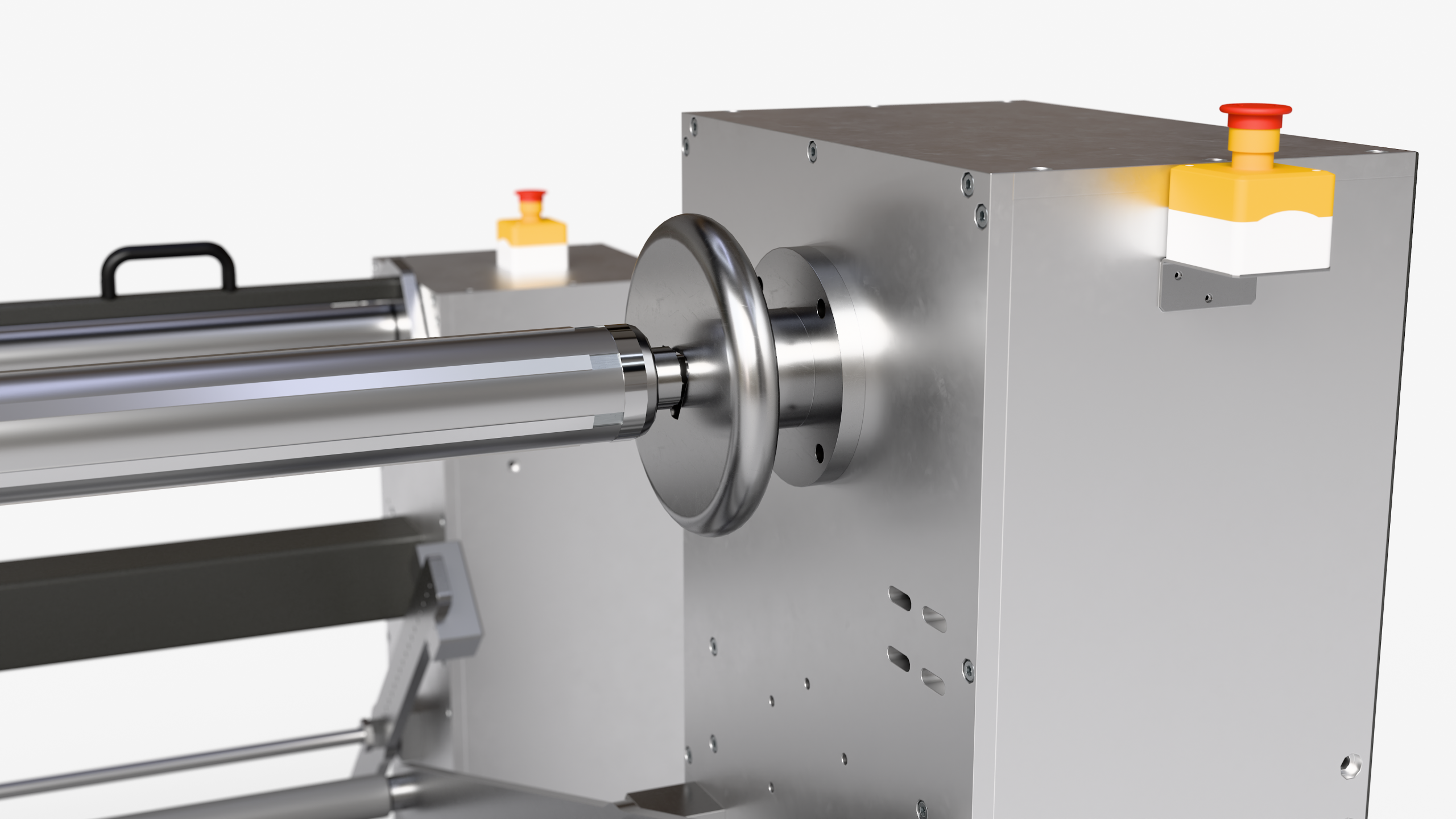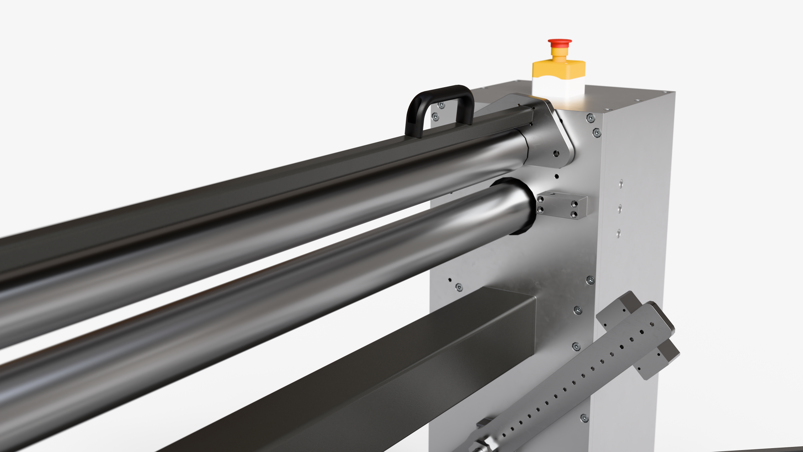 - Shaft equipped with an alignment gauge to ensure precise material positioning.
