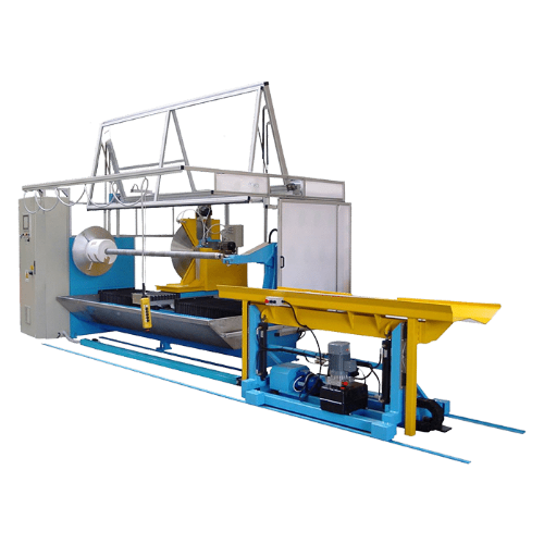 The FEBA model F1000 Series Log Slitting System is the ideal automatic single knife slitter for converting large diameter foam materials including PPL foams, PE foams, PVC foams, convoluted foams and similar materials with a maximum outside diameter of 1,000mm (39.5”).